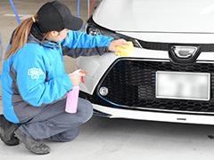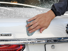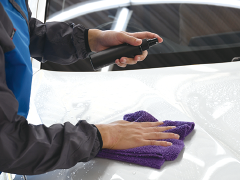 不純物を取り除いた純水洗車を行なうことで、ウォータースポットを作らずキレイに仕上がります。不純物を含まない純水洗車は、拭き上げ時にキズを付けること無く透明感のある仕上がりに。